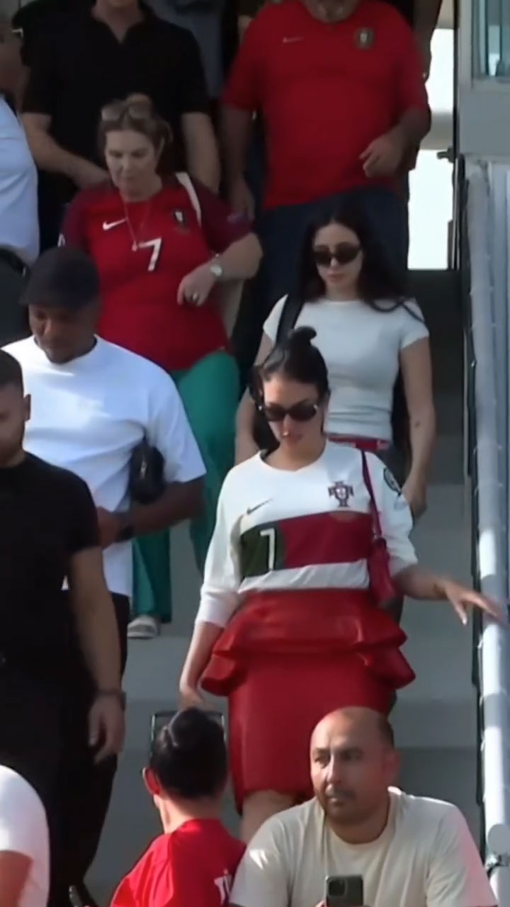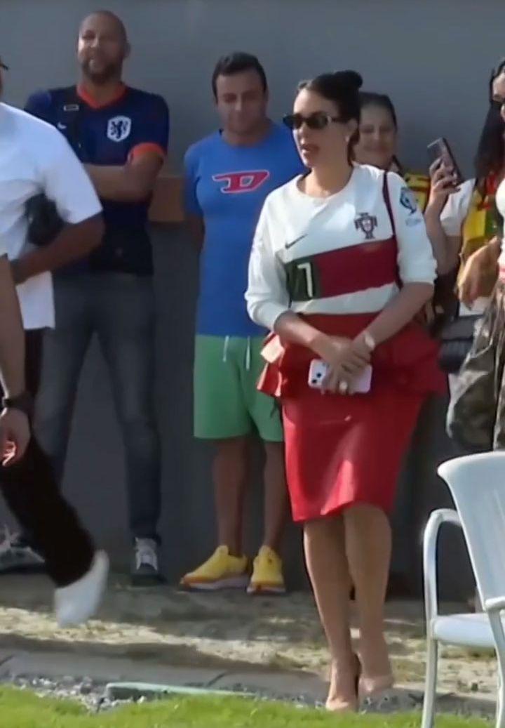 在和迷你罗合影时,乔治娜绽放出灿烂的笑容,颇有“骄傲妈妈”的感觉。当天这位已经跻身世界名媛行列的前柜姐,穿着葡萄牙国家队的长袖队服,搭配了一条略显夸张的猩红色皮裙,显然无论何时乔治娜都没有放弃展示曼妙的身姿。