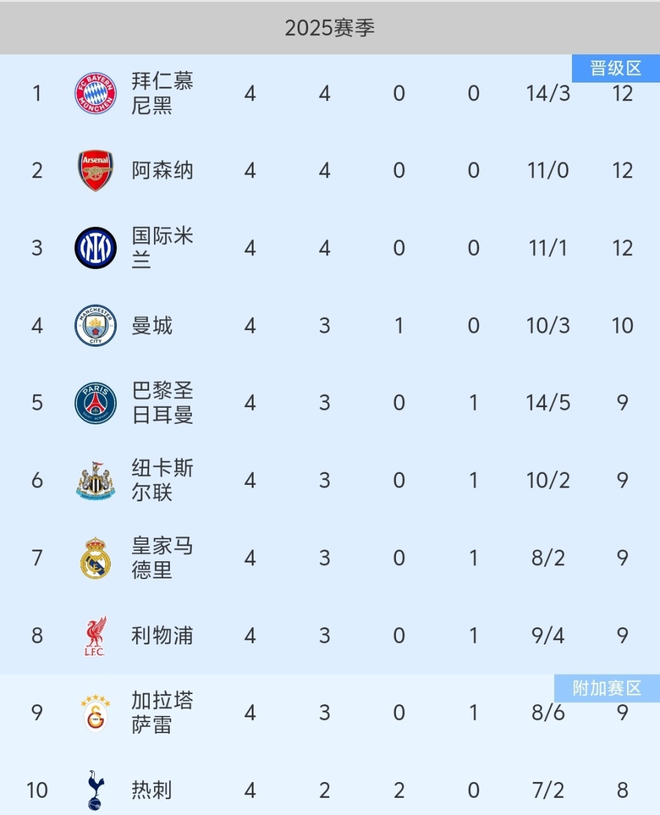 随着巴萨3-3绝平、曼城4-1、国米4连胜,欧冠最新积分榜出炉:巴萨第11!