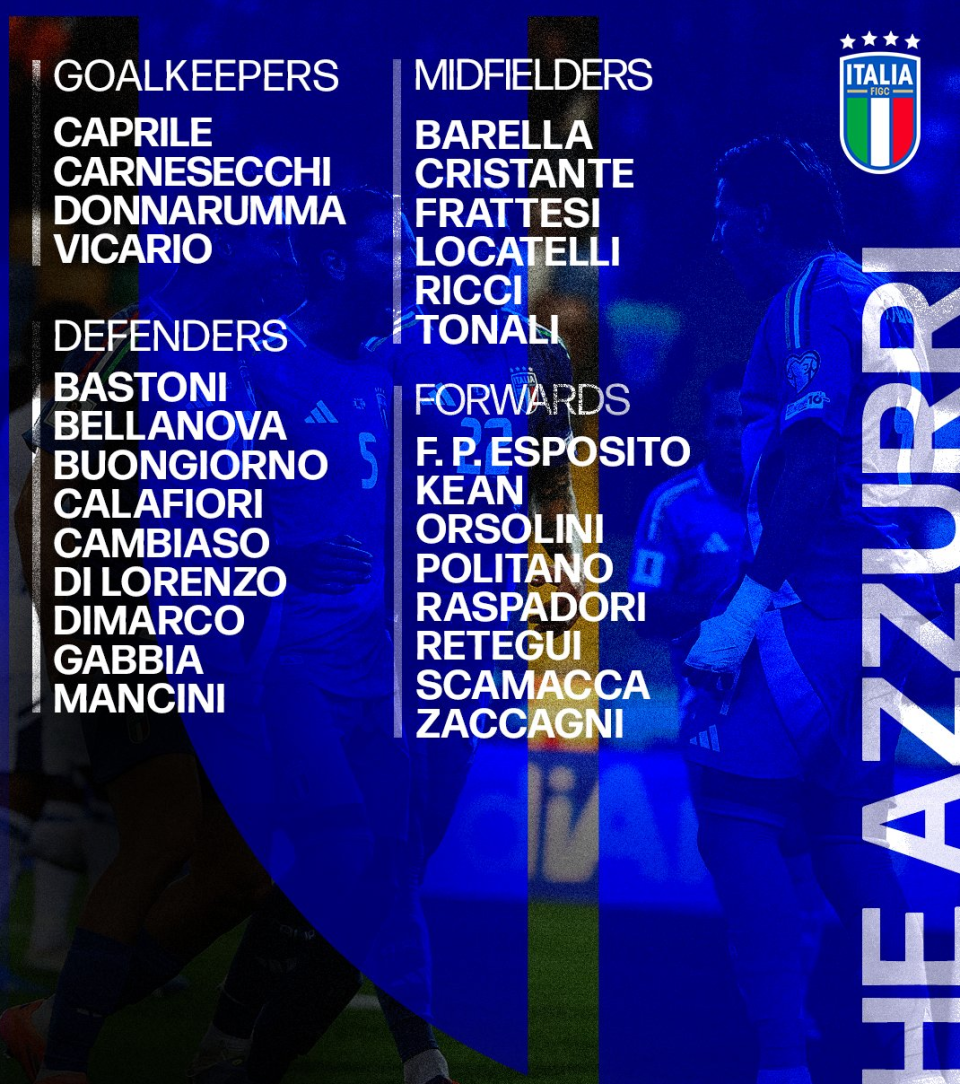官方:意大利公布新大名单,多纳鲁马、托纳利领衔英超四将