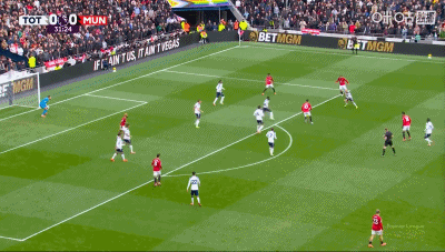 第32分钟,热刺禁区内解围失误,曼联原地组织进攻。阿玛德在右路得球,原地摆腿传中。姆伯莫在两个人的防守下,抢点头球,成功破门!1-0!曼联取得领先。进球后,姆伯莫摊开双手,霸气庆祝。
