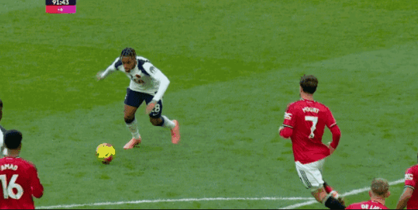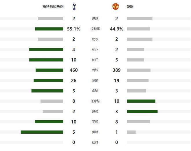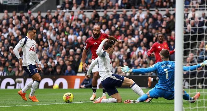 第62分钟热刺中场抢断后,第一时间推反击,约翰逊虽然单刀破门,但越位在先导致进球被取消,狂攻不止的热刺,终于在第84分钟扳平比分,替补登场的特尔,禁区内转身抽射让拉门斯无可奈何,将比分追至1平,起势的热刺在伤停补时第91分钟反超比分,奥多贝尔大禁区外开炮,里沙利松头球一蹭,将比分改写为了2-1,但曼联也没有放弃,德利赫特最后时刻的绝平进球,将比分定格为了2-2。