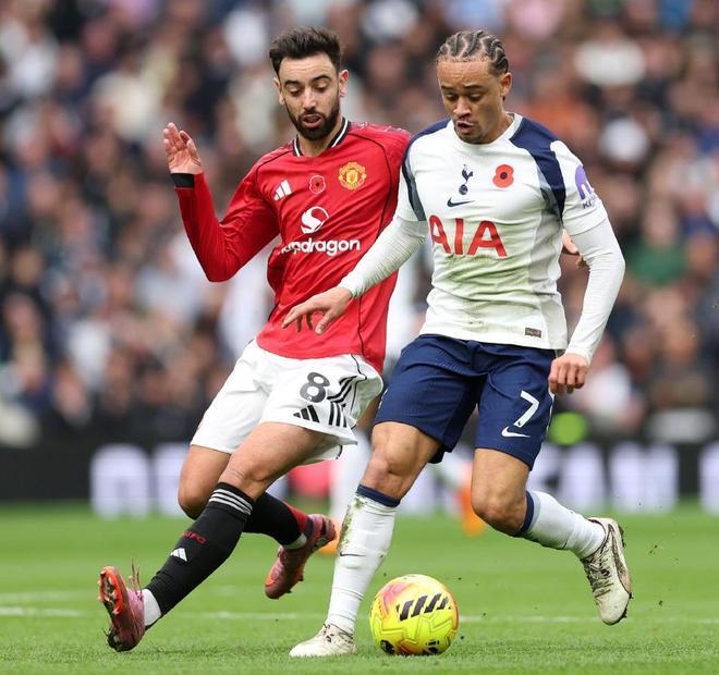 上赛季的热刺堪称曼联的最大苦主,不仅在英超主客场双杀红魔,而且在英联杯的赛场也淘汰了曼联,赛季收官之战又在英联杯的决赛击败红魔捧起了冠军的奖杯,为了延续强势发挥,弗兰克此役在主场没有丝毫保留,在4231的阵型中,让维卡里奥镇守龙门,斯彭斯、范德芬、罗梅罗和波罗构筑后防,萨尔和帕利尼亚搭档双后腰,里沙利松、西蒙斯和约翰逊坐镇中场,单箭头则是穆阿尼。