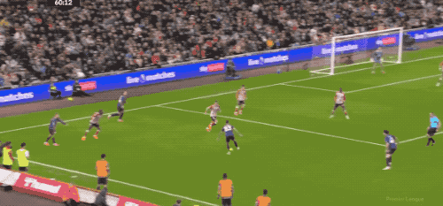 上半场补时阶段,卡拉菲奥里45度传中,萨卡头球摆渡,萨利巴一脚劲射,放了高射炮。
