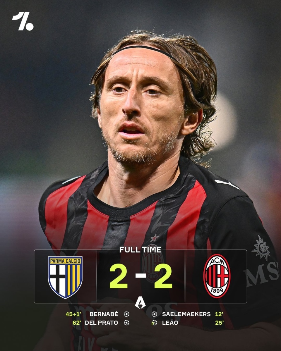 AC米兰客场2-2帕尔马,10轮不败,先赛一场积分追平榜首。恩昆库助攻萨勒马科尔斯贴地斩破门,萨勒马科尔斯造点,莱奥点射命中,布里奇吉助攻伯纳贝世界波,布里奇吉再送助攻,普拉托头球破门,迈尼昂献神扑,萨勒马科尔斯失单刀。
