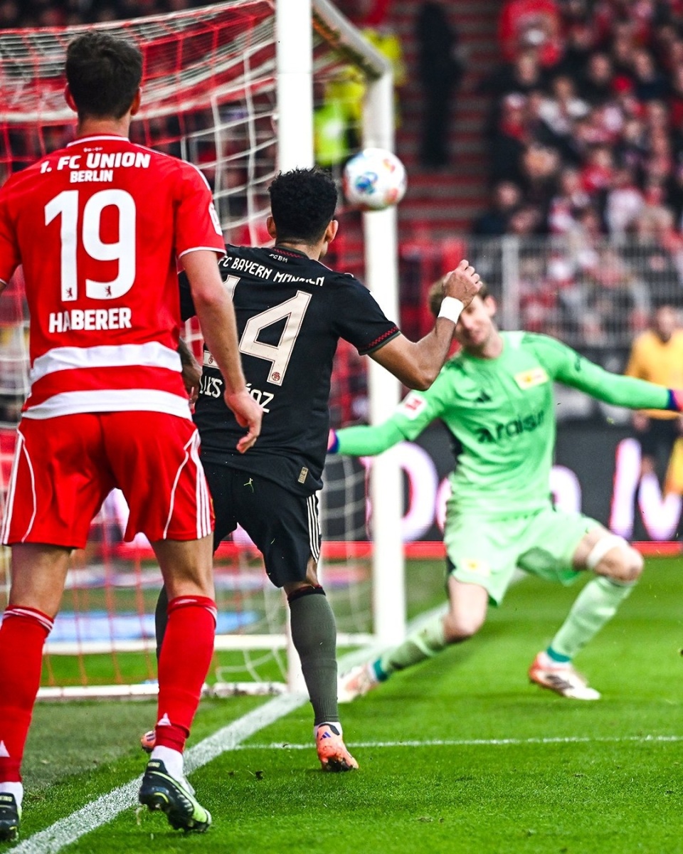 德甲第10轮,拜仁客场2-2绝平柏林联合,16连胜纪录遭终结。安萨破门因越位无效,诺伊尔黄油手,多基破门,迪亚斯零角度神仙球扳平后失单刀,凯恩补时破门因越位无效,凯恩乌龙助攻,多基再下一城,补时阶段凯恩绝平。