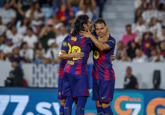 萨维奥拉梅开二度,巴萨传奇队友将“兔子”一把抱起庆祝。