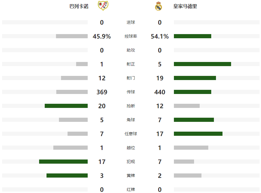北京时间11月9日晚,西甲第12轮中,皇马客场0-0战平巴列卡诺,终结联赛4连胜,领先少赛1场的巴萨6分。皇马各项赛事连续两场未进球,姆巴佩哑火,维尼修斯错失良机。