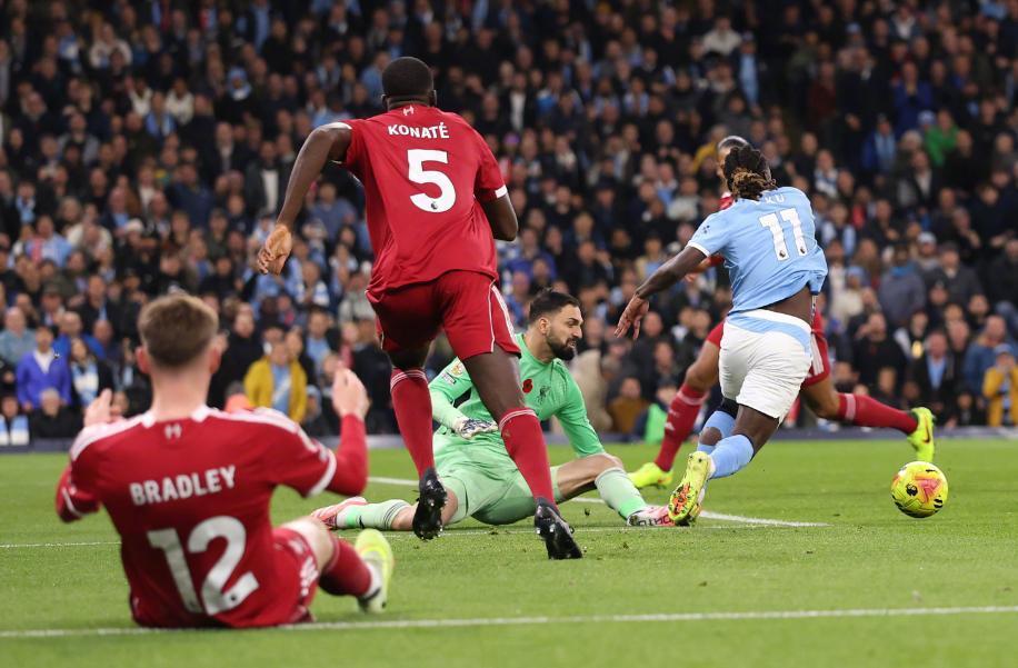 比赛开打之后,状态火热的多库就给利物浦后防造成了非常大的压力,第12分钟突入禁区被放倒,为曼城赢得一粒点球,可惜哈兰德的点射被马马尔达什维利神勇扑出,这也是哈兰德英超生涯第三次点球被扑,不过在第28分钟,哈兰德就将功补过,努内斯右路传中,挪威魔人高高跃起顶对角,帮助曼城取得了1-0的领先。