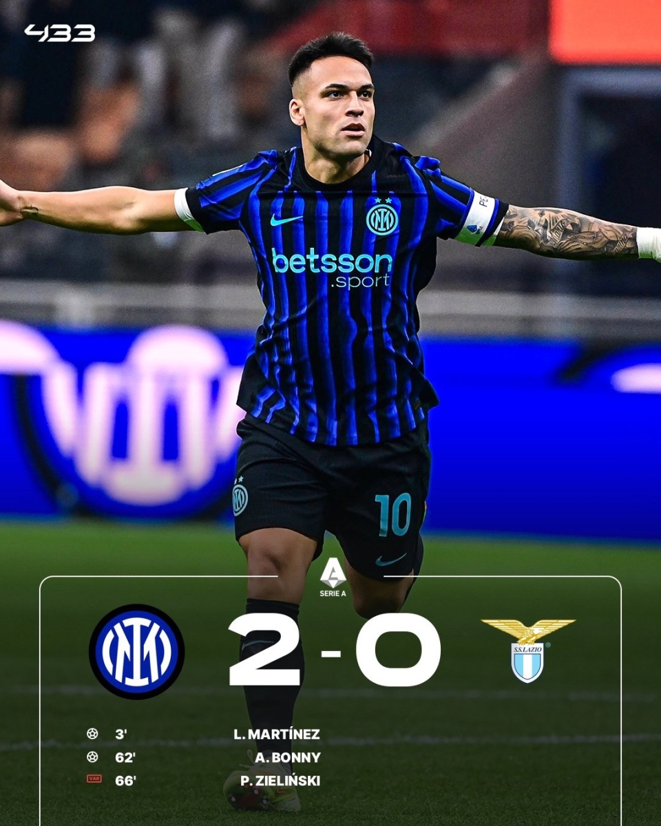 意甲第11轮,国米主场2-0击败拉齐奥,取得联赛三连胜,登上榜首。劳塔罗闪击破门首开纪录,博尼建功,随后泽林斯基打进一球,但是因为队友手球犯规在先,进球无效。