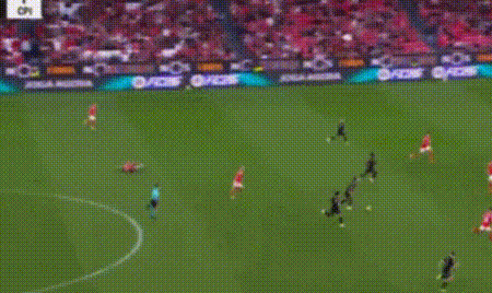 2-1的比分被保持到了90分钟。进入伤停补时阶段,本菲卡的后防线再次犯下巨大错误。第91分钟,对手在右路传中,本菲卡门将卡鲁宾不放心后点的后卫,他决定自己出击。