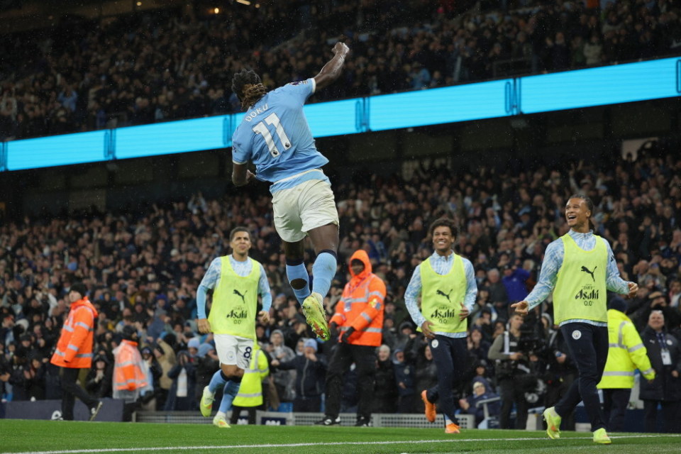 也许是许久未主罚点球,已经13球入账的哈兰德的赛季首罚竟然被一个替补门将给单掌托出了。不过,马马尔达什维利终究还是成为了哈兰德的脚下亡魂——20分钟过后,曼城踢出流畅的集体配合,努内斯右路斜传,哈兰德力压科纳特头槌破门。