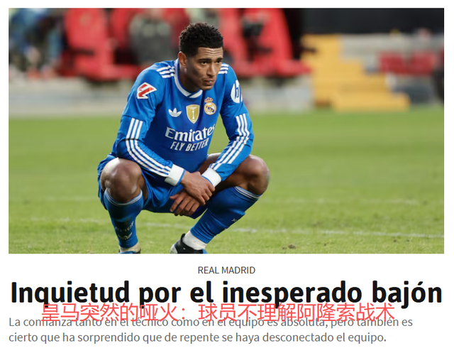 《阿斯报》指出,听上去有些不可思议,皇马从狂喜的情绪跌入低谷。在巴尔德贝巴斯训练基地,球员普遍感到沮丧。这2场比赛的表现明显退步,皇马感到担忧——尽管,还远未到“敲响警钟”的程度。皇马需要保持谨慎,不断自我反思。