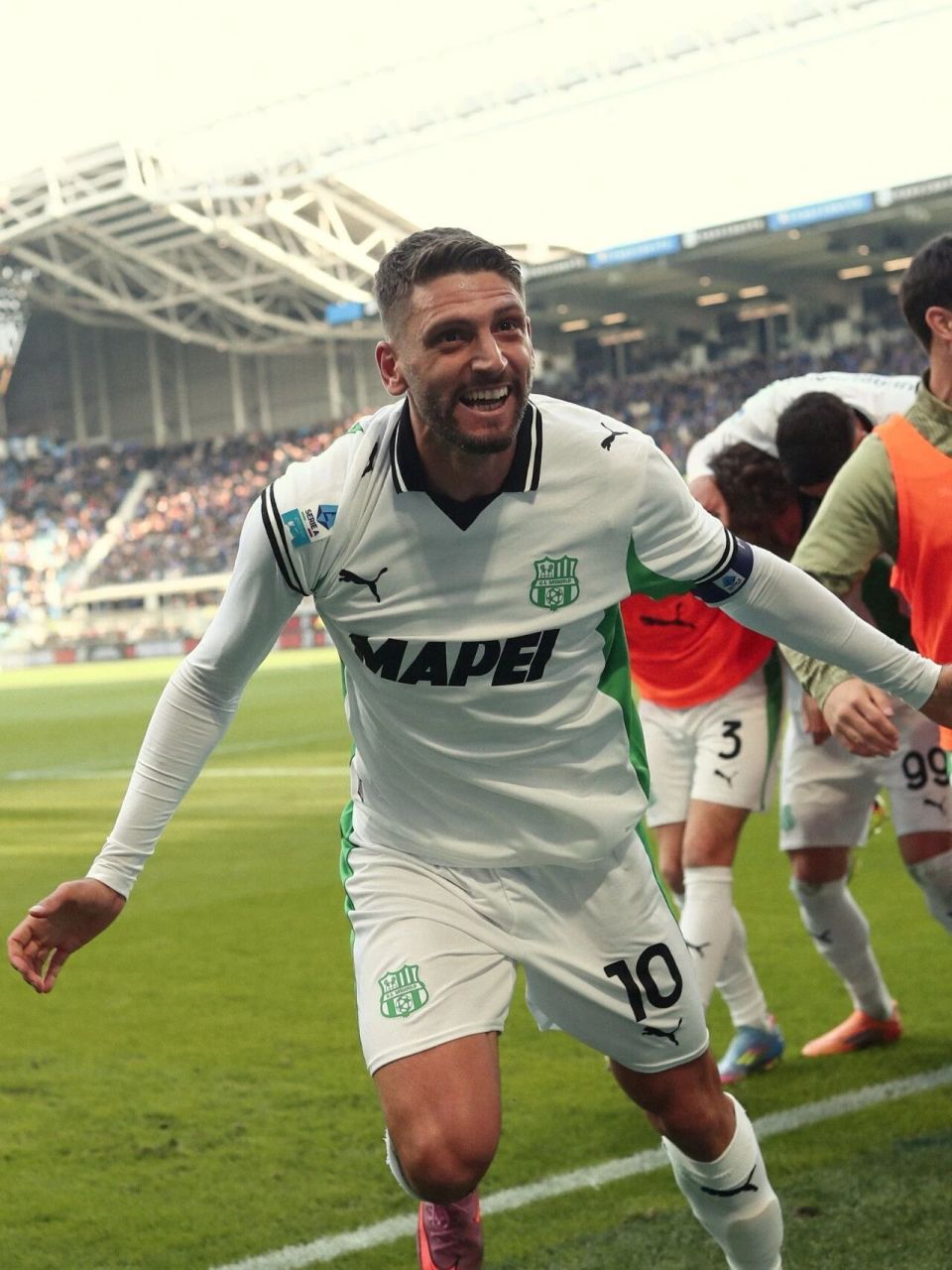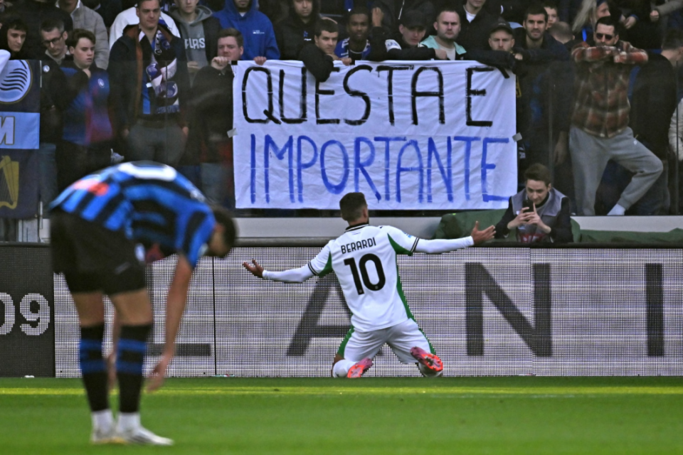 第11轮比赛结束之后,意甲官方公布了这一轮比赛的最佳阵容,一个并不陌生,但又有些久违的名字回到了我们的视线之中:对阵亚特兰大,贝拉尔迪上演了梅开二度的好戏,另外还有一次助攻,直接帮助萨索洛3-0完胜对手,拿到三分的同时,捎带手让亚特兰大主帅尤里奇品尝了一年里三次被解雇的滋味。2013-14赛季,AC米兰就曾在客场3-4不敌萨索洛,后者的4个进球全部来自贝拉尔迪脚下,而当时的他只有19岁。11年的兜兜转转之后,阿莱格里又回到了AC米兰,开始了自己在红黑军团的第二次执教生涯,但贝拉尔迪却还在萨索洛,一直都没有离开。在这11年当中,他并不是没有前往更大的舞台的机会,甚至都有机会成为阿莱格里的球员,但或许是和其他球队的缘分未到,或许也是和萨索洛的缘分未尽,31岁的他依然是球迷口中的那个“绿贝贝”。“一人一城”并不是贝拉尔迪的本意,但可能已经成为了他的命中注定。通常来说,“一人一城”的剧情都会发生在本地球员和本地俱乐部的身上,彼此之间早就有着深深的羁绊,才有机会缔造出类似的童话。从这个角度来说,贝拉尔迪和萨索洛之间的关系更不应该发展到这般高度,因为贝拉尔迪根本就不是萨索洛人,他出生在意大利南部的卡里亚蒂,那里和萨索洛有着750公里的距离。在青少年时期,贝拉尔迪其实是从家乡附近的科森扎俱乐部开始学习踢球的,但在2010年,贝拉尔迪告别科森扎后,一度陷入了无球可踢的状态,转折出现在16岁那年,他去萨索洛看望在那里读书的哥哥,期间在学校里和别人踢了一场5对5的小场比赛。接受过职业训练的他,自然在场上显得鹤立鸡群,结果就有这么巧的事情,萨索洛俱乐部的助教卢西亚诺-卡尔利诺就在场边。“那个时候,贝拉尔迪震惊了所有人,他的表现是现象级的。我迫不及待地找到我们的体育主管,叫他给这孩子安排一场试训。”作为一家专注于培养本国年轻球员的俱乐部,萨索洛向来不吝于收揽意大利本土的好苗子,于是在机缘巧合之下,贝拉尔迪就这样在一个此前风马牛不相及的地方,重新开始了自己的足球生涯。2012年8月,贝拉尔迪完成自己在一线队的首秀,虽然当时的萨索洛还在征战意乙联赛,但对手是刚刚从意甲降级的切塞纳。那场比赛,球队也是3-0完胜对手,首发出场的贝拉尔迪表现也很出色。以至于在赛后,在佛罗伦萨、都灵都踢过的切塞纳中卫科莫托在接受采访的时候,都忍不住问问记者:2012-2013赛季,贝拉尔迪为球队出场37次,打进11球,和两位队友共享队内射手王的荣誉,自然也成为了球队升级的最大功臣之一。这样优异的表现,让贝拉尔迪吸引了多支豪门球队的关注,不仅有意大利的球队,还有不少英超豪门。近水楼台先得月,尤文图斯在当时抢先拿下了贝拉尔迪的50%所有权,而且将贝拉尔迪租回萨索洛的同时,尤文图斯还把当时也很有潜力的小将马罗内的50%所有权无偿转让给了萨索洛。如此交易,自然体现了尤文图斯对贝拉尔迪的潜力的看重,而来到意甲联赛之后,贝拉尔迪也没有辜负各方的期望,第一个意甲赛季就用大四喜,让阿莱格里成为了他的刀下鬼。在第一个意甲赛季,贝拉尔迪奉上了16个进球,6次助攻的数据。之所以能够打出这样的数据,既和贝拉尔迪自身的能力有关,也和萨索洛这支球队特殊的战术思路有关。从2014年3月开始,迪-弗朗西斯科开始执教球队,他的执教理念相当新颖,也和意大利传统有着很大的不同,所以在迪-弗朗西斯科的治下,萨索洛变成了一支能够踢出快节奏,甚至是美丽足球的球队。这样的战术打法,自然非常利好贝拉尔迪这样本身就具备天赋的年轻进攻球员,也能让贝拉尔迪充分展现出他的技术特点。“我的模板?我认为是皮耶罗,因为他的踢球风格一直影响着我。”在当时,贝拉尔迪的确在朝着皮耶罗的方向大踏步地前进,包括穿上那件黑白条纹的球衣。2014-15赛季,贝拉尔迪的数据继续增长到15球10助攻,球队的战绩也从积分榜的末段来到了中游。就在那两年,贝拉尔迪迎来了需要抉择的时刻。2015年夏天,萨索洛用1000万欧元从尤文图斯买断了贝拉尔迪的50%所有权,在外界看来,这是尤文图斯即将用更高的价钱引进球员的前奏,但在2016年夏天,当尤文图斯的合同真的摆在他眼前的时候,贝拉尔迪却选择了拒绝。“贝拉尔迪错过了加盟尤文的那趟火车?不是的,这是他自己做出的选择。阿莱格里和马洛塔都向贝拉尔迪发出过邀请,而贝拉尔迪的选择是留在萨索洛,因为他对萨索洛有很深的感情,并且与萨索洛前主席斯奎奇以及他的家族之间有很好的关系。”回顾当年,贝拉尔迪的前队友弗罗洛-弗洛雷斯给出了自己的看法,当然了,弗洛雷斯并不完全认同贝拉尔迪所做的决定:“如果是我,那肯定就加盟尤文了,毕竟这种事情这辈子可能也就发生这么一次。”之所以做出了和大部分人不同的选择,贝拉尔迪没有认真地解释过,但通过一些蛛丝马迹,可以发现除了和俱乐部关系很好之外的其他原因。2020年,贝拉尔迪的经纪人在接受采访时,提到了球员在2016年确实最接近离队,但贝拉尔迪当时选择留队的时候,其实也非常开心,“萨索洛的氛围就和大家庭一样,也许这就是球员和俱乐部能保持一致的真正原因。”另外,“萨索洛知道如何最大限度地利用他们努力培养的人才。”而且,贝拉尔迪在接受采访的时候说过,如果任其选择,他希望去利物浦踢球,他愿意尝试新的挑战,但却有一个