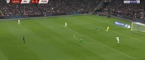 回过头来爱尔兰再次觅得机会,奥贝内左路内切推射,迪奥戈-科斯塔鞭长莫及,不过皮球击中立柱弹出,葡萄牙逃过一劫。