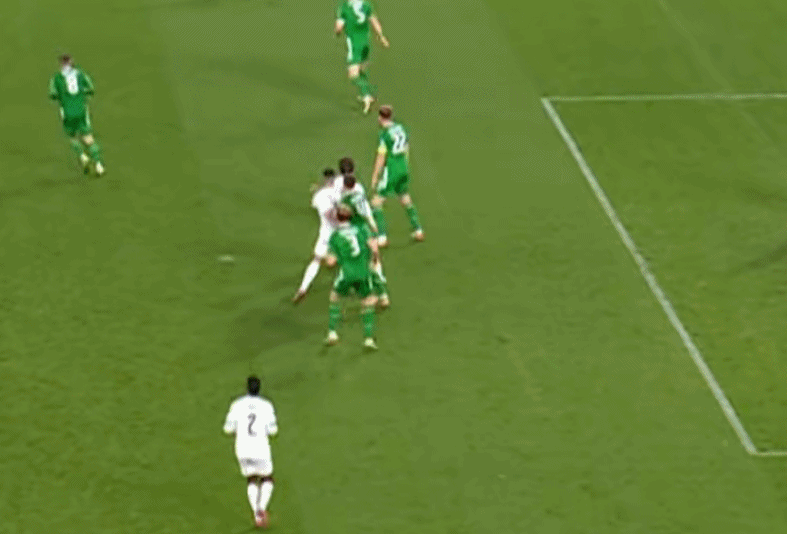 从判罚来说,C罗的红牌应该没有任何争议。他对伊普斯维奇后卫达拉·奥谢有个明显的故意肘击动作,肢体语言带着一种气急败坏的感觉。这不是达拉·奥谢第一次让C罗如此气恼。2021年9月,同样是世预赛,C罗准备主罚点球时,奥谢使了个坏,把球故意踢走,C罗气得给了他一掌,击打的是胳膊,奥谢阴险地立刻捂头倒地。