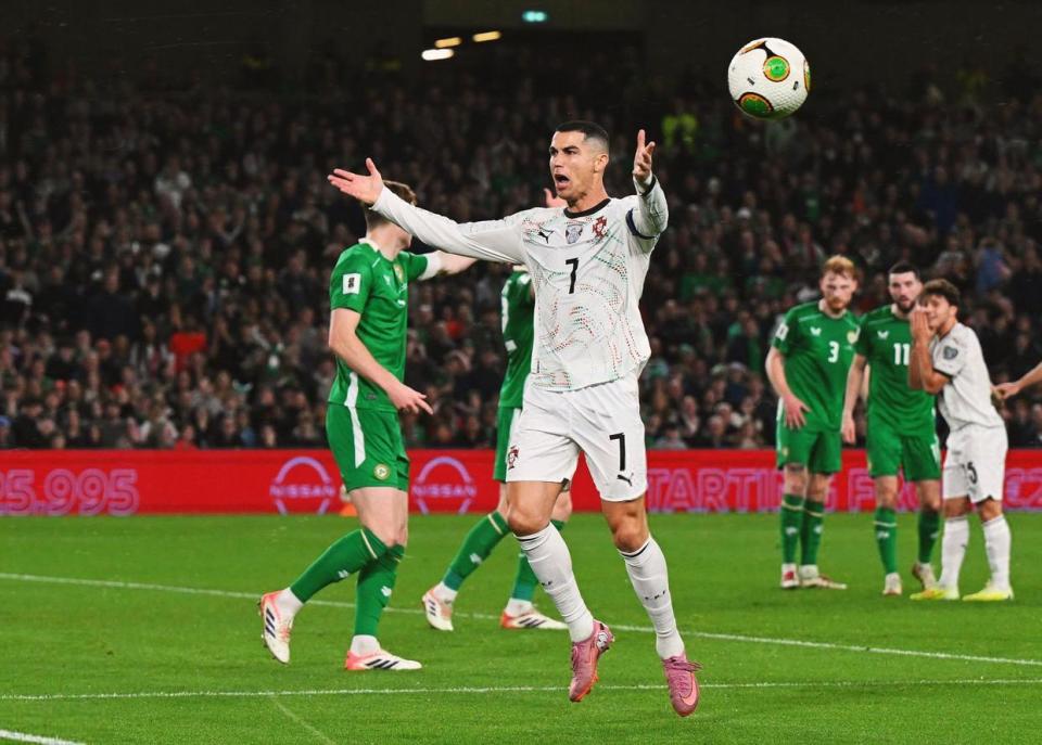 比赛开始后,葡萄牙的进攻势头不错;第9分钟,C罗任意球直接射门,皮球击中人墙;第11分钟,坎塞洛右路倒三角传中,C罗抢点发力过猛抽射打飞。不过在主场球迷的助威声帮助下,率先取得领先的却是主队的爱尔兰;第18分钟,利用一次角球机会,斯凯尔斯头球摆渡,帕罗特接力近距离头球破门,0:1!
