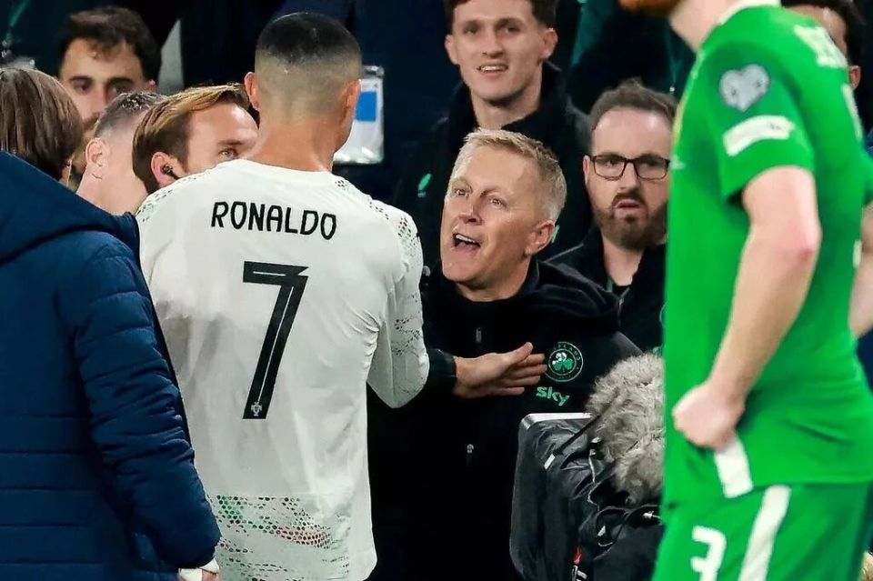 然而,嘘声如期而至,而他在比赛中的一次肘击行为更是让他陷入尴尬境地——C罗在一次争抢落点的过程中对爱尔兰的球员进行了一次肘击动作,随后还朝对手做出了哭泣的手势。然而不久之后主裁判到场边回看了这一事件的录像,最终直接将C罗红牌罚下。