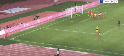 第14分钟,湖北队获得角球,经过二次进攻,邓梦晔的头球被徐欢没收。