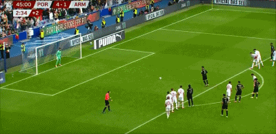 第41分钟,若昂-内维斯主罚任意球踢出圆月弯刀直挂死角,葡萄牙4-1领先。