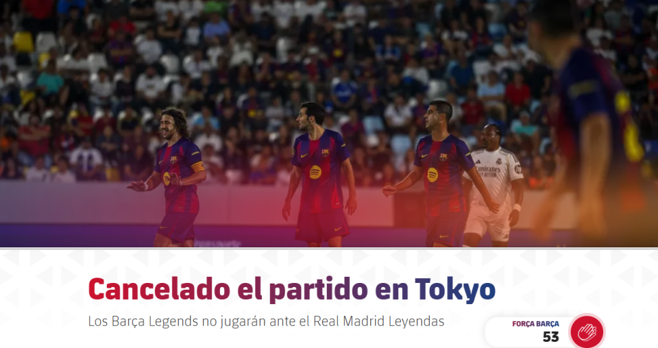 巴萨官方:因外部原因,取消在东京进行的皇马与巴萨传奇赛