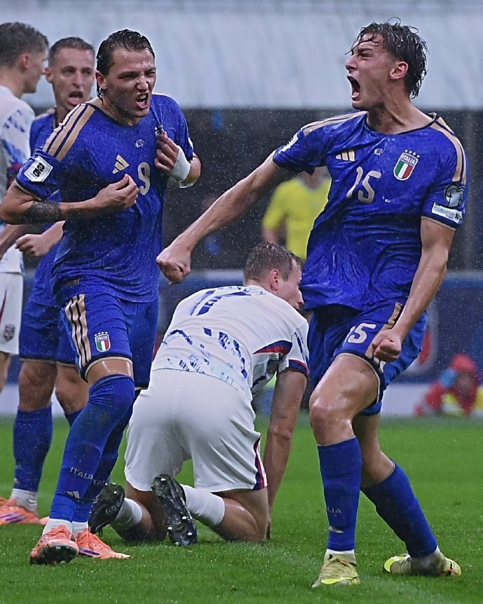 意大利需要一场净胜9球的大胜才能晋级世界杯,挪威只要不超过丢球数依然是小组第一;为此他们只需要将精力放在了防守上。第7分钟,迪洛伦佐右侧肋部传中,迪马尔科禁区内迎球抽射,皮球偏出立柱;第11分钟,雷特吉回敲,迪马尔科再传,皮奥-埃斯波西托倚住防守接球转身破门一气呵成,1:0!这是埃斯波西托在梅阿查的首粒进球,他此前代表国米的2粒进球是在客场打进的。