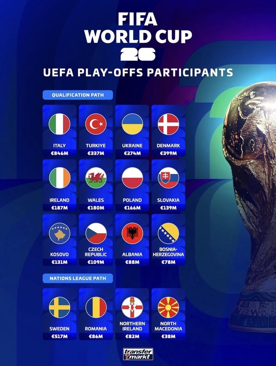 世界杯最后6席!附加赛今晚抽签:意大利生死战,伊拉克赢1场就出线