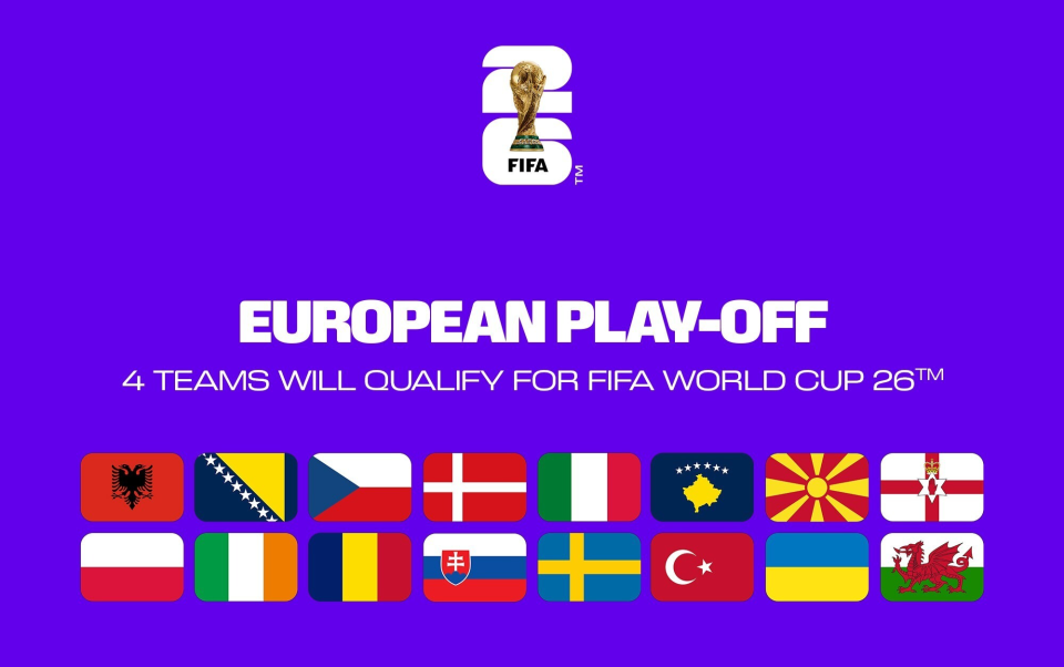 世界杯欧洲区附加赛的两轮比赛,将分别于明年的3月26日和3月31日举行。