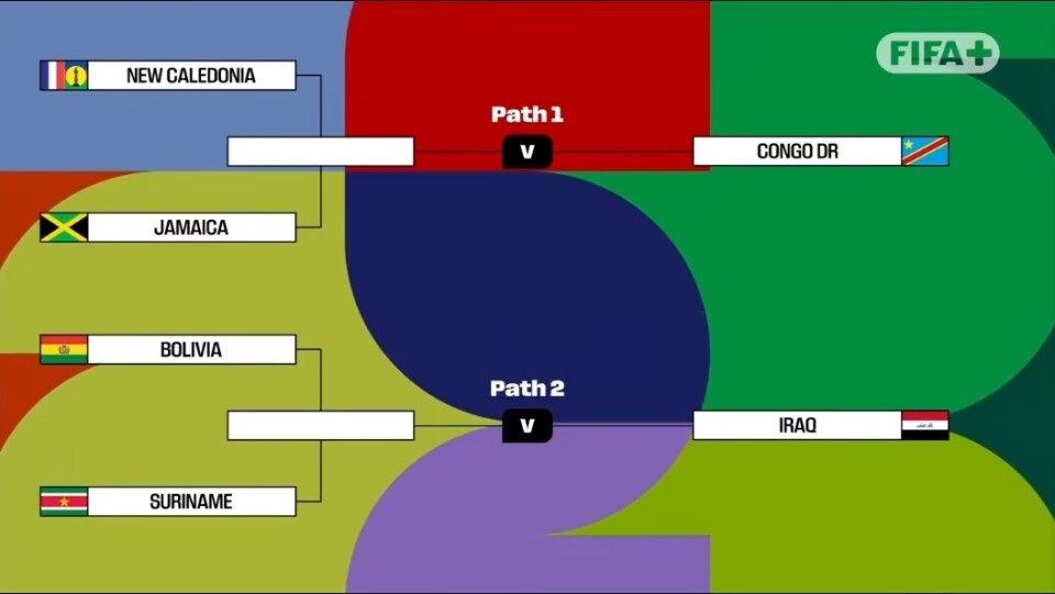 6支球队分为2个小组,每组3队,世界排名靠后的2队先踢1场半决赛,胜者再与世界排名靠前的1队(伊拉克/民主刚果)踢决赛。最终,2个小组的决赛胜者晋级世界杯。