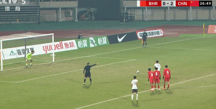 第25分钟,巴林门将易卜拉欣失误,帅惟浩断球捅射击中门柱,万项得球被易卜拉欣绊倒,主裁判判罚点球,万项一蹴而就,3比0!