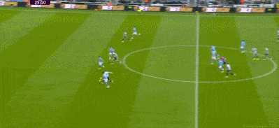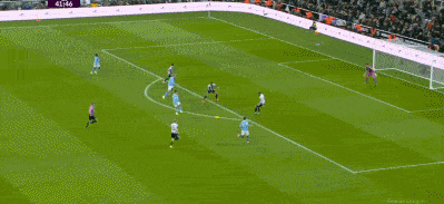 第49分钟,曼城右路直塞,B席禁区右侧闪开角度后左脚兜射远角偏出。