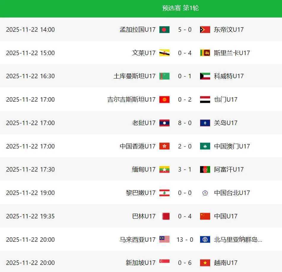 不过首个比赛日却诞生了多场惨案,下面让我们一起走进U17亚预赛的赛况信息。