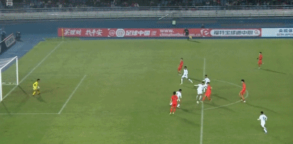 第64分钟,王贺毅右路横传,无人盯防的谢晋头球冲顶破门,10比0!