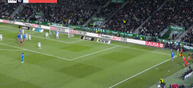 比赛第53分钟,费巴斯左侧肋部与队友做撞墙配合,瓦雷拉送出助攻,费巴斯面对门将抢先射门球进,皇马0-1落后了!