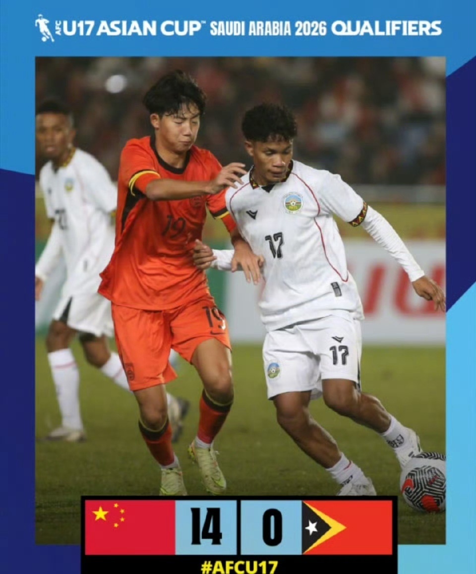 在2026年U17亚洲杯预选赛A组中,中国U16男足已取得了两连胜。特别是昨晚14-0狂胜东帝汶队,让人大呼过瘾。两轮比赛过后,凭借18个净胜球优势,中国队暂列小组第一。