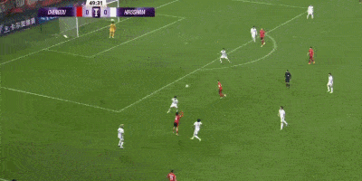 第70分钟,韦世豪杀到弧顶前分球到禁区右侧,跟进的胡荷韬小角度打门,对手门将扑球失误,皮球稍稍偏出远端立柱。