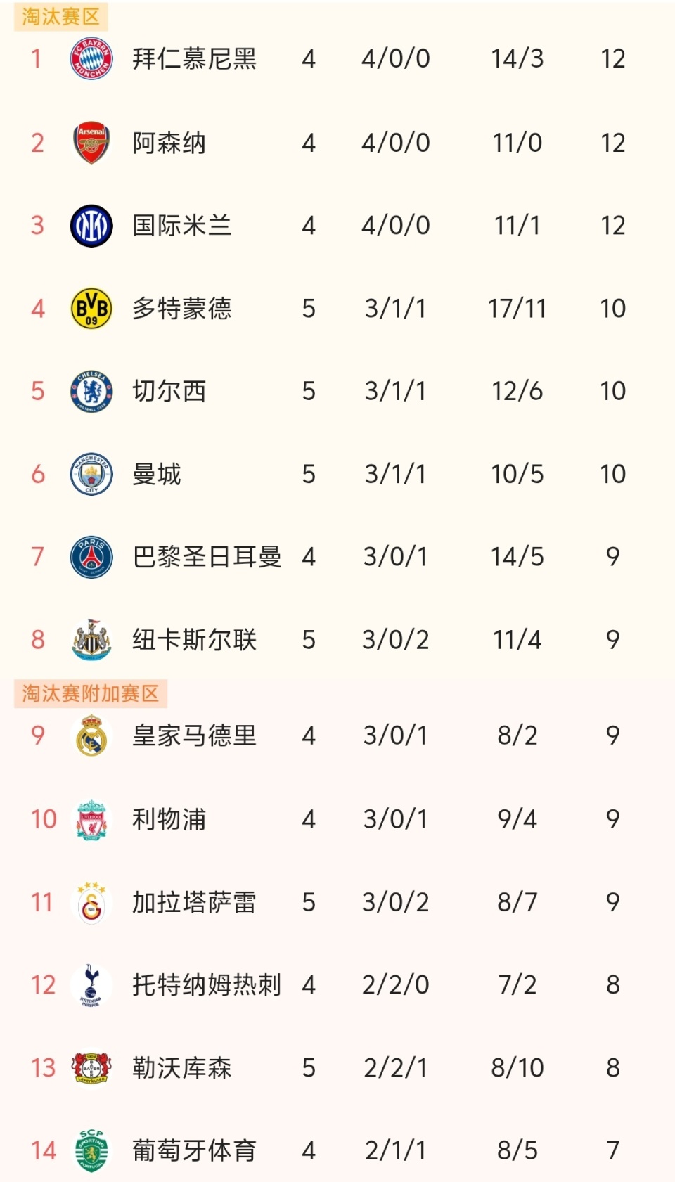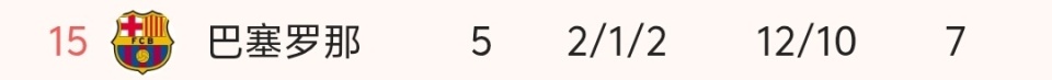 随着巴萨0-3完败、曼城0-2输球,欧冠最新积分榜出炉:巴萨第15!