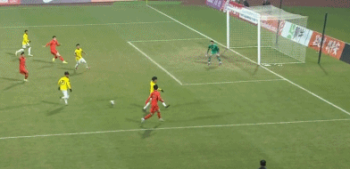 身体处于劣势的文莱球员频频倒地,这让上半场的补时多达8分钟。上半场补时第2分钟,张君豪底线横传,万项前点挑射破门,4比0!