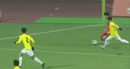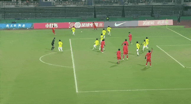 第39分钟,又是万项主罚左侧角球到门前,赵松源吸引防守注意力,后点的李铭杰头球攻门得手,中国队3-0领先。