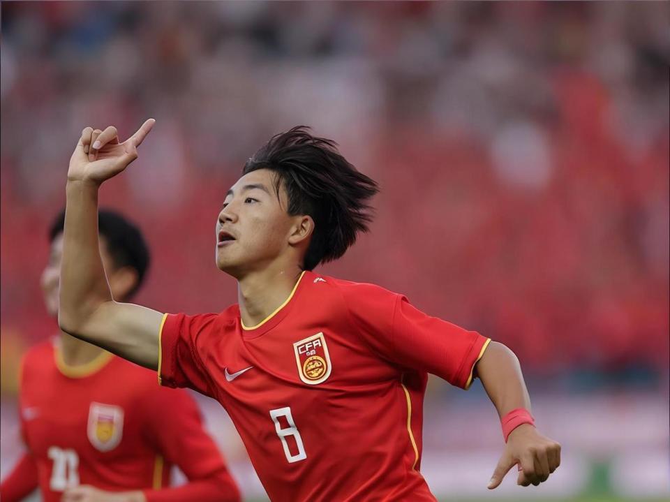 上半场比赛,中国队开局仅1分钟就拿到点球机会,不过邝兆雷的射门被扑出,随后松源利用头球拔得头筹。