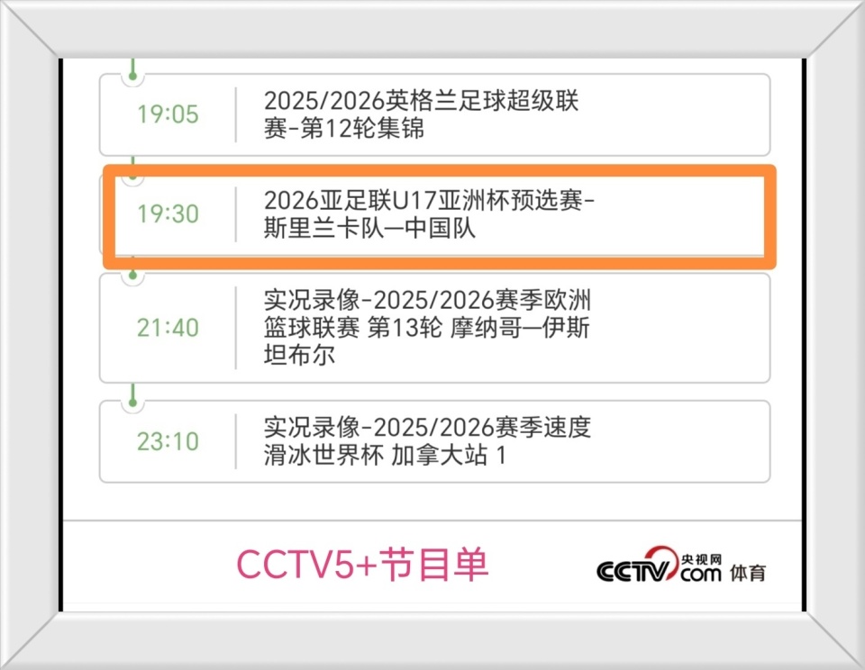另外需要提醒球迷的是,根据央视体育频道的更新的节目单显示,本场比赛直播有了调整,不再安排CCTV5直播,而是改由CCTV5+播放,想要看比赛的球迷记得换台。