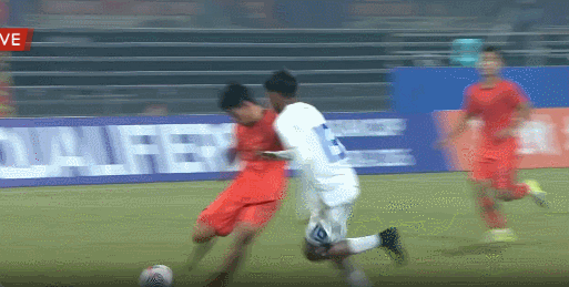 比赛第41分钟,中国队于右路发起传中,邝兆镭接赵松源摆渡后捅射破门,将场上比分改写为了3-0。