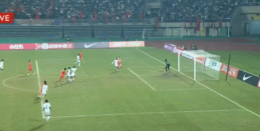 比赛第40分钟,邝兆镭于禁区前沿起脚打门,皮球擦着球门横梁飞出了底线。