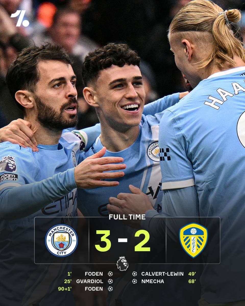 英超第13轮,曼城主场3-2绝杀利兹联,结束各项赛事两连败,先赛距榜首4分。福登开场闪击,格瓦迪奥尔再下一城,努内斯送礼,勒温扳回一球,格瓦迪奥尔送点,恩梅查失点但补射打进,福登补时绝杀。