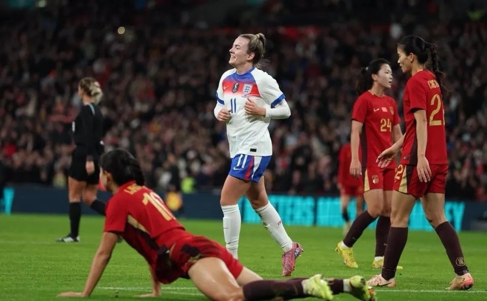 足球友谊赛在温布利大球场进行,中国女足客场0-8惨败英格兰女足。女足全场遭压制,控球仅3成,6射门2射正。上半场11分钟连丢4球,李梦雯手球送点,下半场斯坦维帽子戏法,女足后场玩火,潘红艳开球被断。