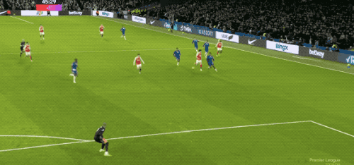 第59分钟,萨卡下底后虚晃一枪传中,梅里诺再次完美完成中锋的角色,头槌破门。
