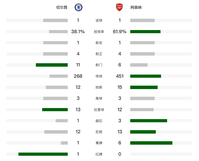 英超:阿森纳1-1十人切尔西!近17场不败+5分优势领跑 凯塞多染红