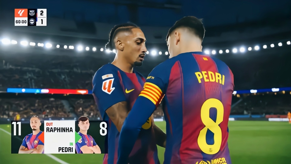 比赛第8分钟,拉菲尼亚前插下底传中,莱万前点蹭了一下,后点的亚马尔劲射破门,1-1,巴萨很快扳平了比分!