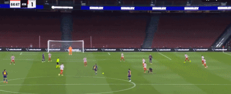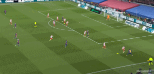 第65分钟,莱万中路做球,奥尔莫斜射远角入网,2-1。