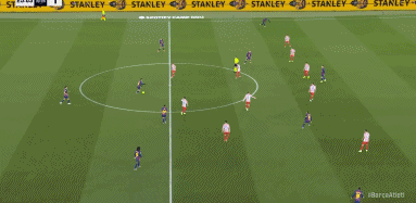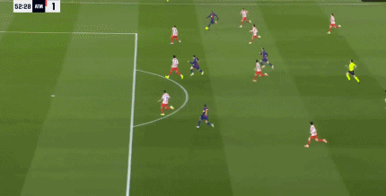 第26分钟,佩德里直塞,拉菲尼亚前插形成单刀,盘过奥布拉克推射入空门,1-1。