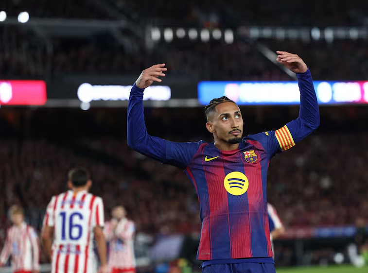 西甲:巴萨3-1逆转马竞夺5连胜领跑 拉菲尼亚破门莱万失点+助攻